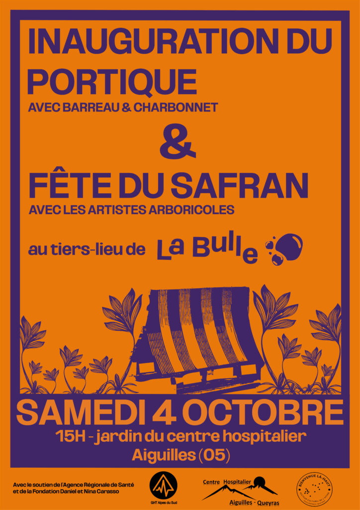 Le Centre hospitalier Aiguilles-Queyras et Bienvenue là-haut vous invitent à l’inauguration des deux premières installations de La Bulle : Les chroniques du portique, de Barreau & Charbonnet ; Le jardin de la Bulle, des Artistes arboricoles.