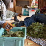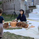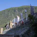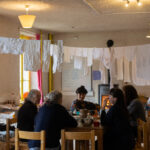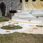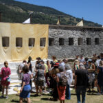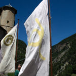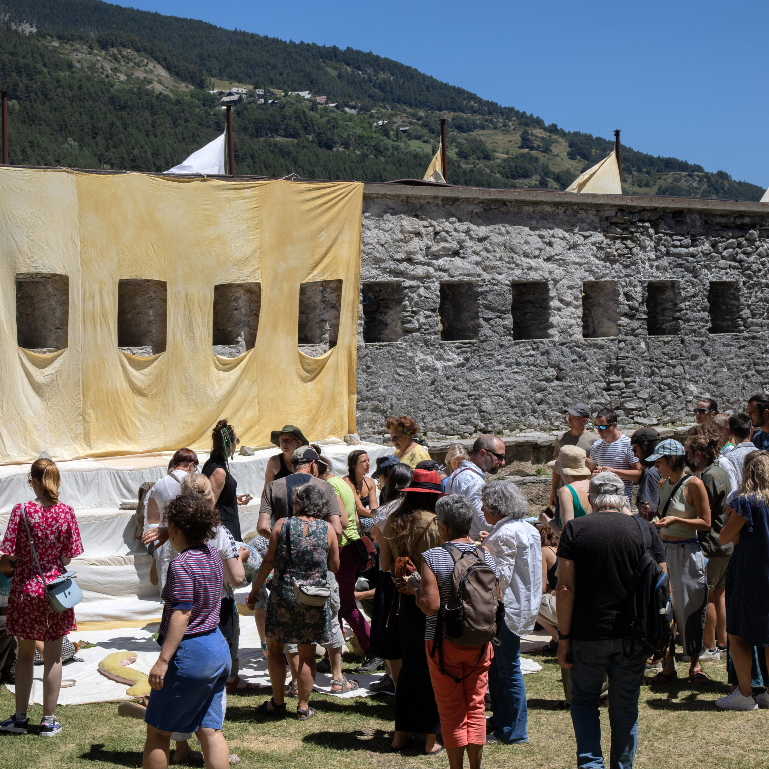 Se confier à flamme forte est le résultat de cette recherche : de ses premières cueillettes de plantes à la rencontre des habitant·es lors d’ateliers de teinture végétale, Lucie a imaginé une œuvre textile conçue à partir des plantes tinctoriales du Queyras. Une création collective et locale qui a transformé le Fort pendant toute la semaine d’Épilog[s]. Pour la journée d’inauguration, Lucie a proposé trois temps de repas préparés collectivement avec les habitantes et habitants du territoire. En parallèle, elle a pu présenter de grandes pièces textiles, s’étendant sur les volumes du fort, en modifiant ainsi l’aspect architectural. Des drapeaux ont aussi été réalisés, remplaçant le temps d’une semaine, les blasons des escartons du Queyras.