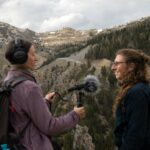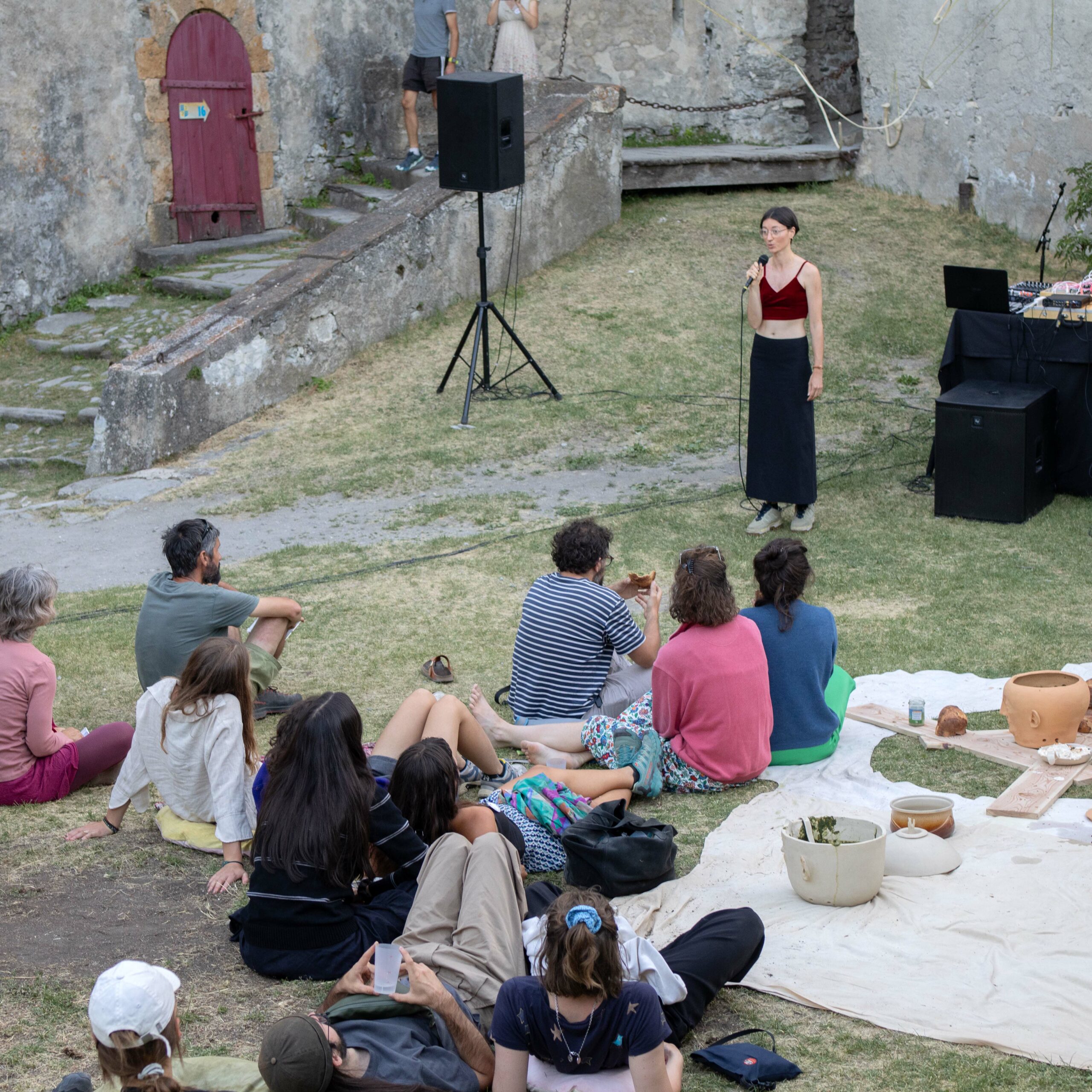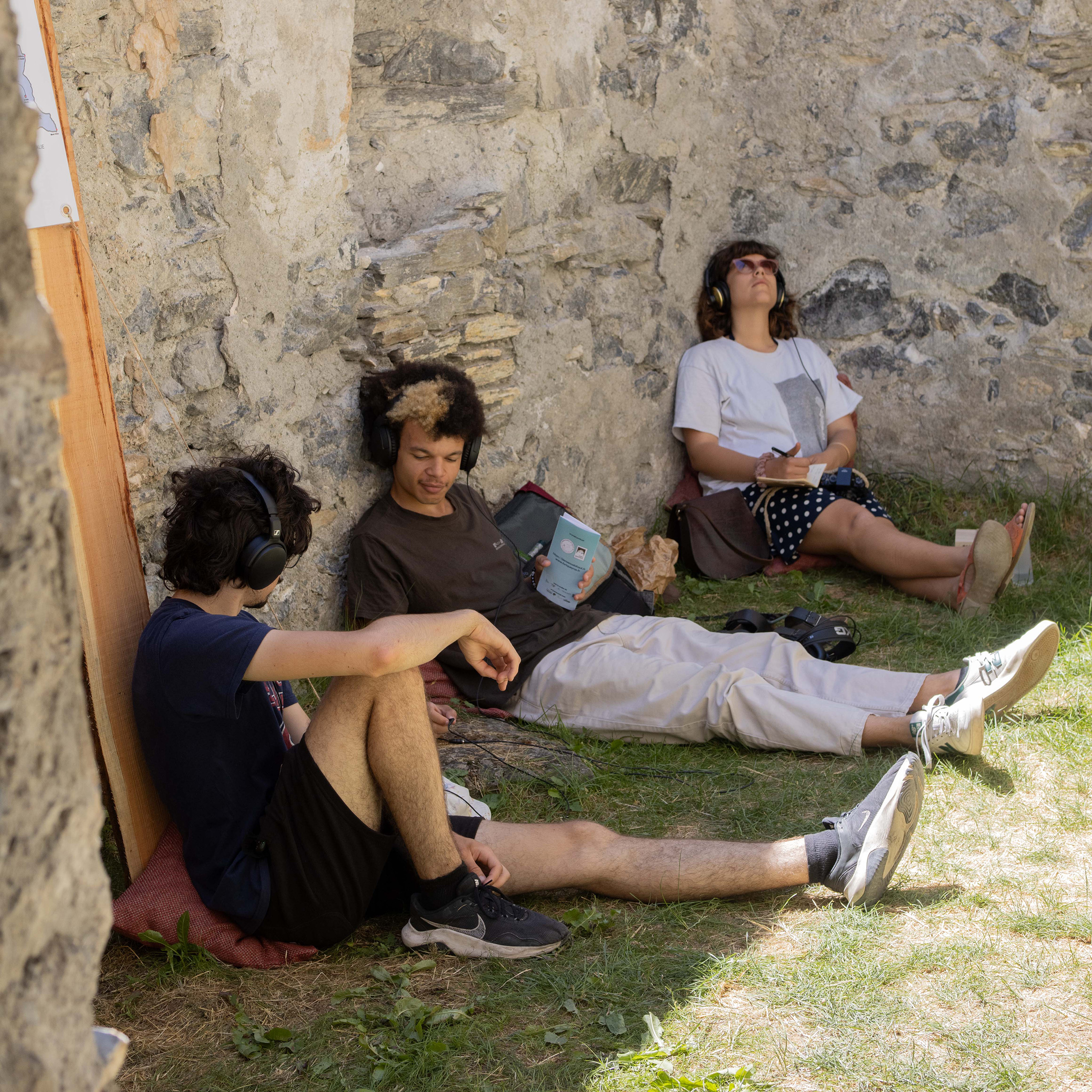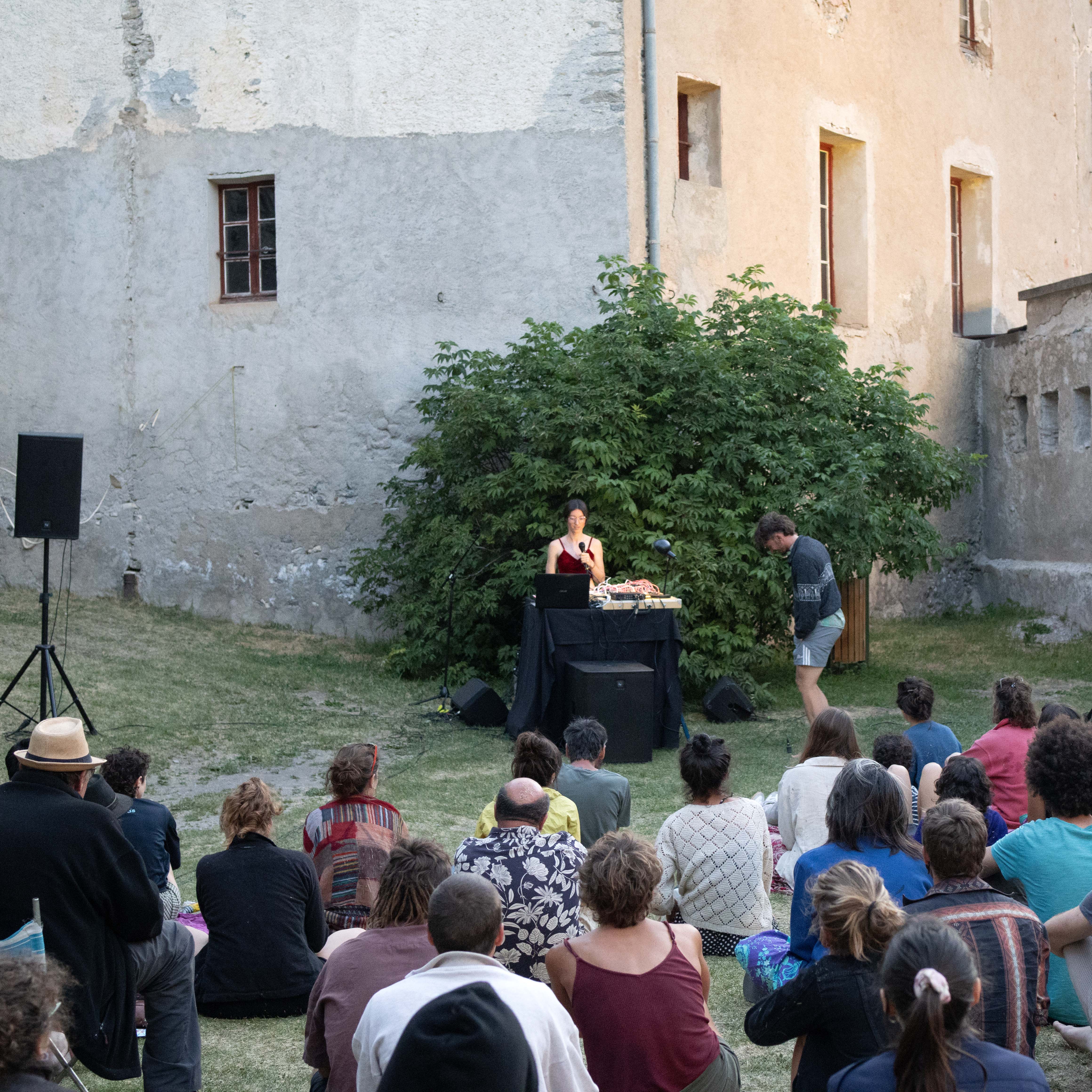 Aline Clair a proposé une découverte de la musique analogique. À partir d’enregistrement des bruits des roches réalisés sur le territoire, préalablement enregistrés, transformés et mixés jusqu’à devenir des éléments rythmiques et mélodiques centraux de la performance. Elle a également conçu une série de podcasts, accessibles via des bornes d’écoute, retraçant la rencontre d’Aline avec des géologues et des passionné·es de roches. Ces enregistrements racontent la formation des montagnes, leur lente érosion et les grondements qui en portent la mémoire.