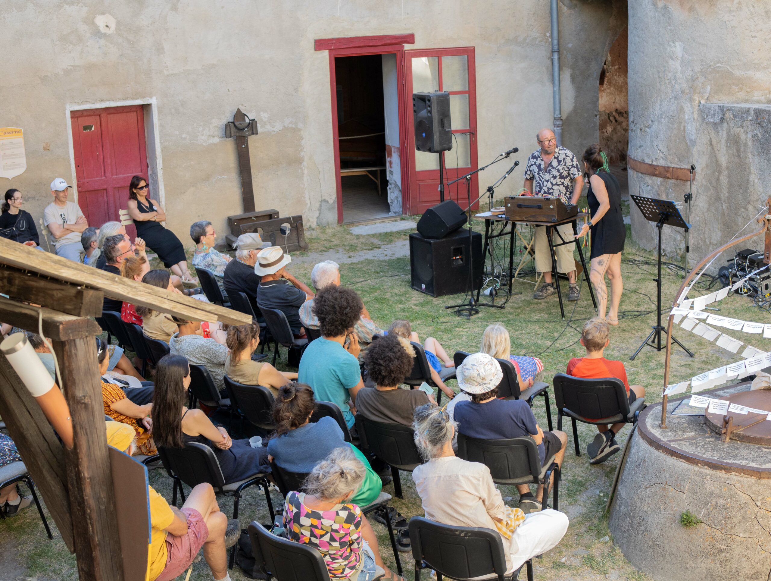 Lors de résidences collaboratives au cours de l’année, une relation s’est développée avec les habitant.es du Guillestrois-Queyras. Des «assemblées futuristes» ont été mise en place, questionnant des fictions possibles et proposant des réponses collectives. Et si demain, la neige avait fait grève ? Et si l’électricité s’était raréfiée ? Et si l’eau avait manqué ? Et si nous avions fait de nos territoires, de grandes coopératives ? De ces travaux ont émergés des écrits ainsi qu’un travail sonore. Cette performance poétique a été présenté lors d’une journée engageant les spectateur·ices dans des échanges et réflexions communes sur les futurs possibles du territoire.